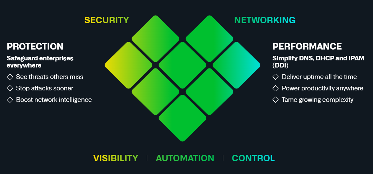 Infoblox has been engineering game-changing solutions for core network services and security for more than two decades, delivering improved performance and protection across complex hybrid, multi-cloud environments through a simplified, cloud-enabled networking and security platform. Infoblox is a recognised leader in core DNS, DHCP, and IPAM (DDI) networking services with more than 13,000 customers including 75% of the Fortune 500 and all of the Fortune 100.